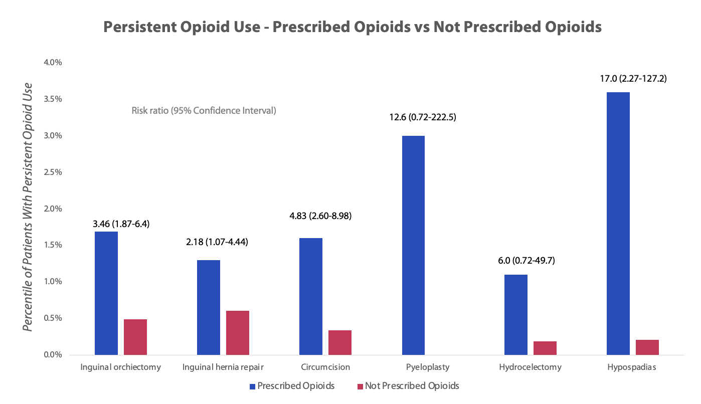 Conclusions: We found that the use of perioperative opioids in several pediatric urological procedures is associated with a significant risk of developing new persistent opioid use.